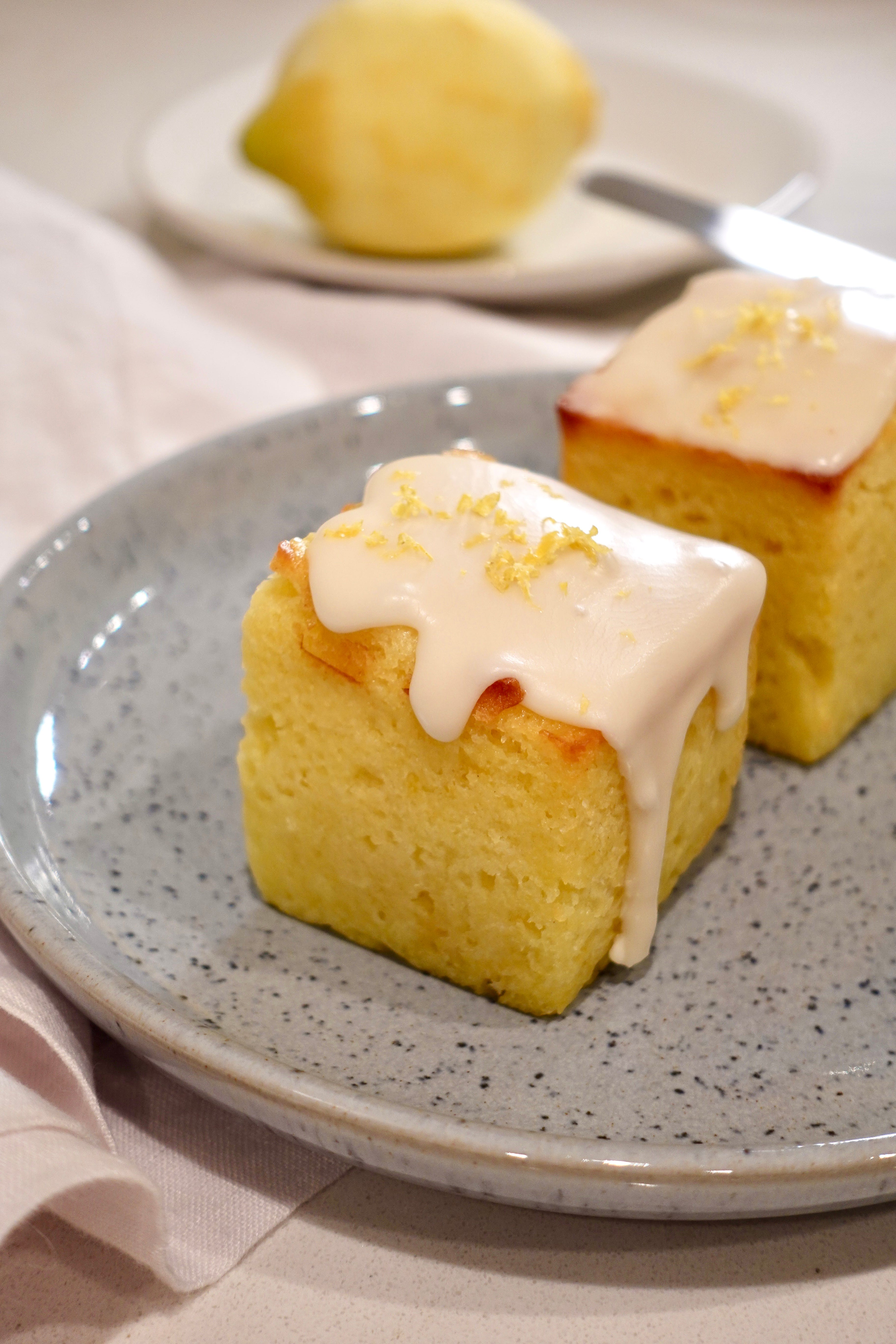 I used John Kanell’s (Preppy Kitchen) lemon pound cake recipe as the base and stole a few methods from Hanbit Cho’s recipe for the cube shape: