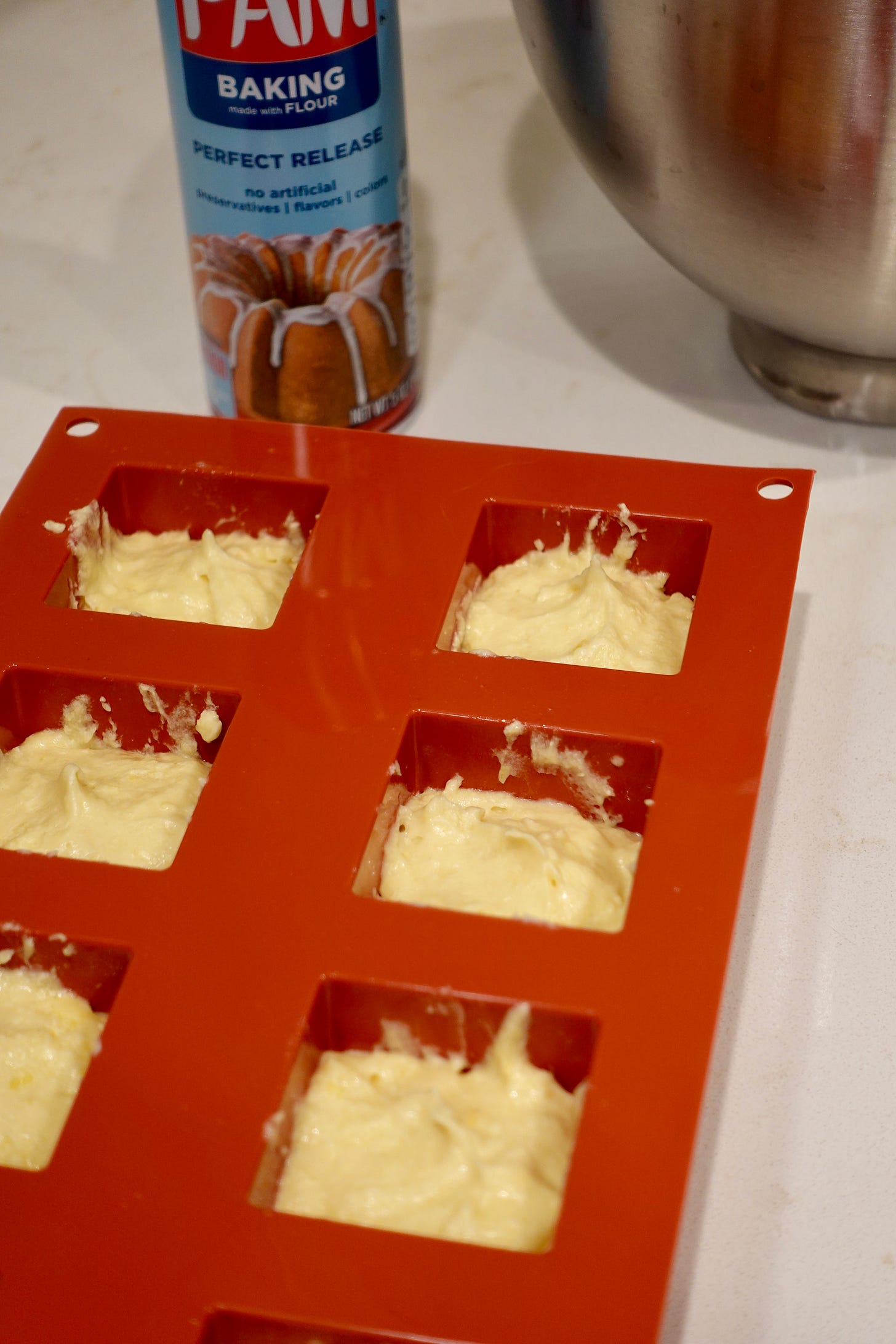 I spritzed Pam into each cube even though Cho mentions you don’t need it at all. But I didn’t want to take any chances with my first-ever pound cake!